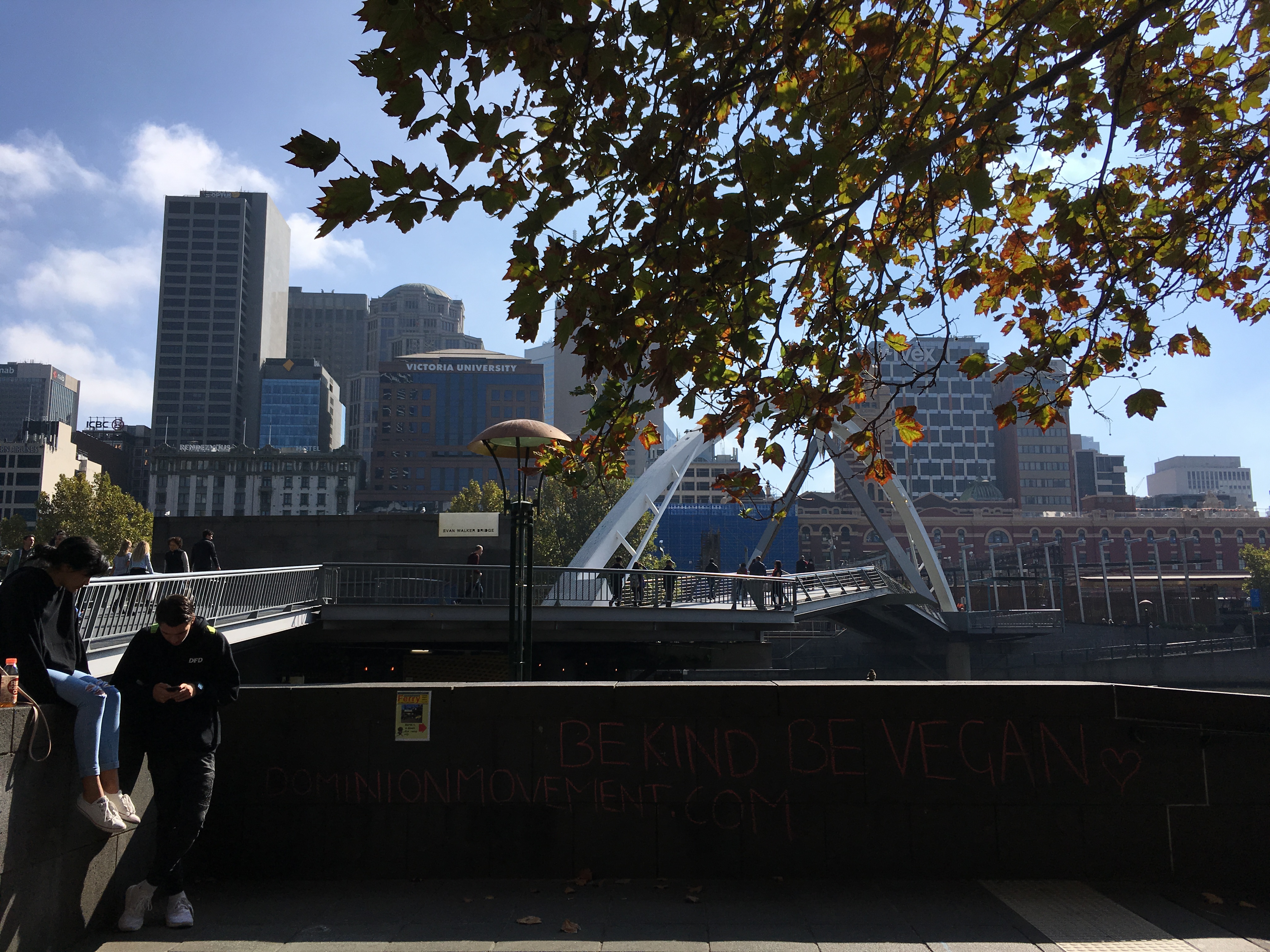 I was at my happiest that weekend with K. We had lunch in South Wharf, ice-cream from inside the Crown Casino, and stopped to watch dubious street artists perform underwhelming skits (- a drummer making music out of containers, a Wellingtonian fire-eater with a self-deprecating wit much sharper than any of his tricks, a fluffy blue monster playing the bagpipes). We ate Italian and drank too much wine, took Ubers for the first time. We stumbled upon barges of fluorescent cocktails, underpasses defaced with Vegan graffiti, and when we arrived in Fed Square it was full of dancers.