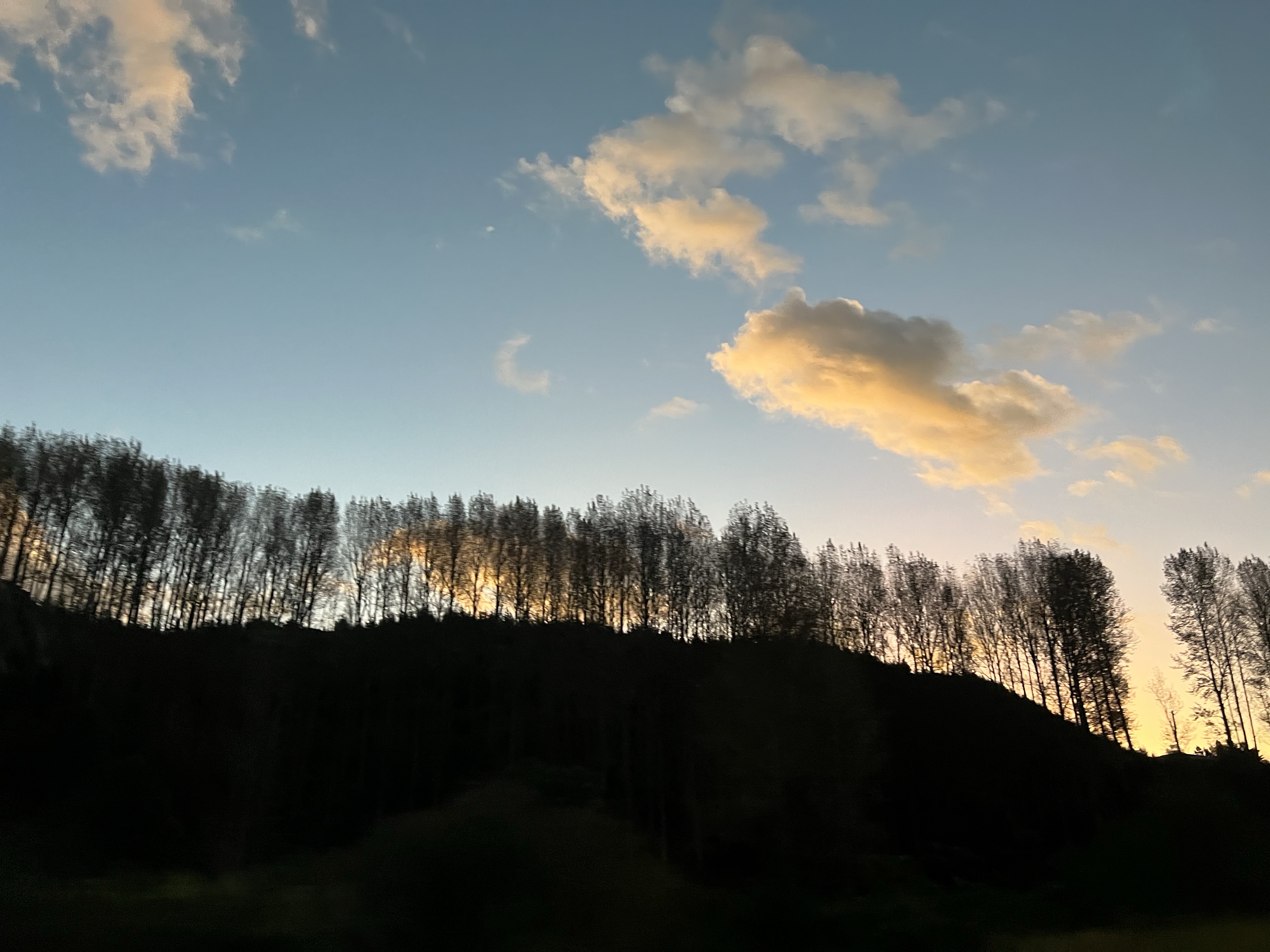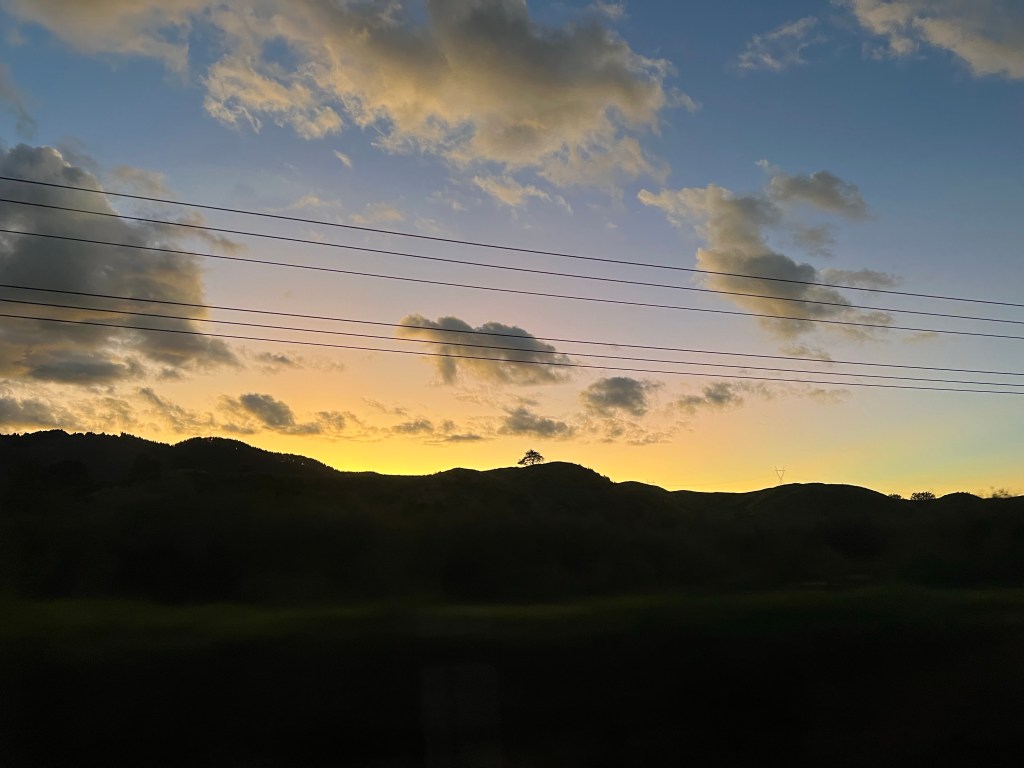 It is late now, the sun setting as we rejoin the main road. A beautiful evening, and also: one of the first sunsets I have witnessed in the past six months, as my life has been reshaped around that of my baby. I can’t get enough of the skies, blues and yellows and peaches and pinks, and then Venus is out, and Orion, and night falls as we speed back towards the city, back home.
